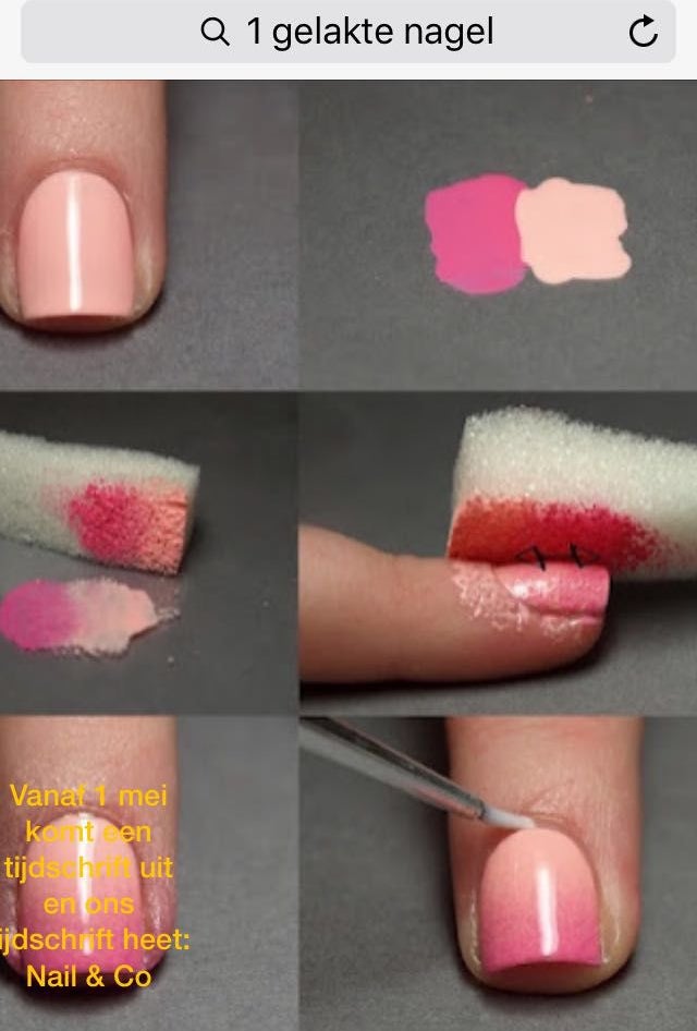 doe de plakband om je vingers en pak de spons . doe er 2 kleuren nagelak op en druk het op je vingers haal het er nu af en klaar is kees